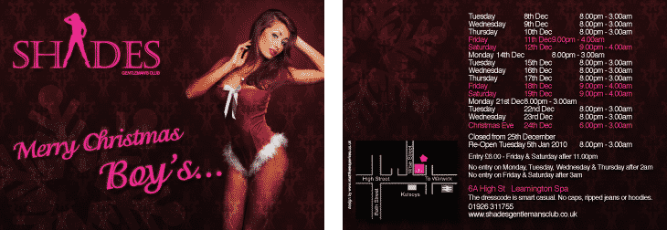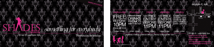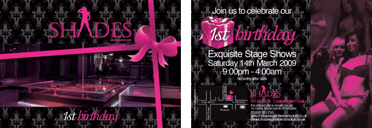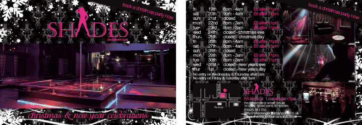 Shades Gentleman’s Club Leamington Spa Logo, Brand Identity, Interior Design, Flyers, Posters, Website, Photography, Video, Social Media