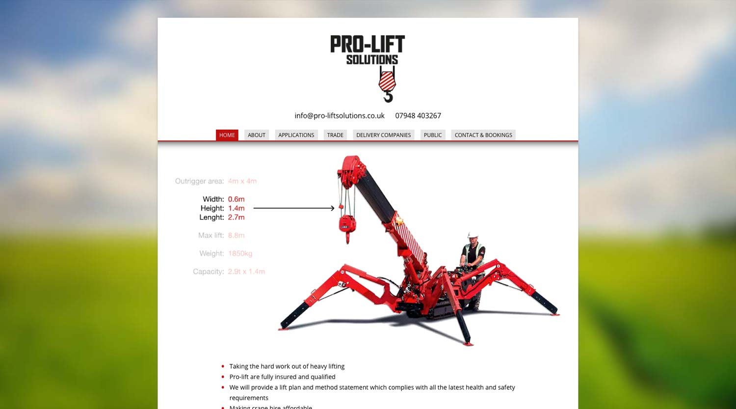 Pro-Lift Solutions Crane Hire Services Leamington Spa Logo, Brand identity, Website & SEO, Social media, Animation, Vehicle Livery View all design projects Want this?